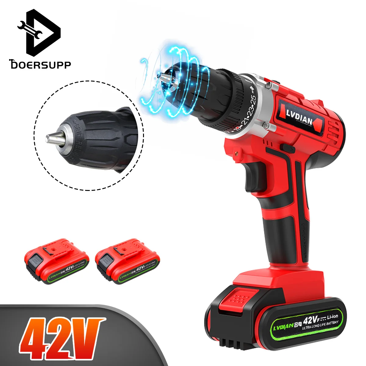 Best Product DOERSUPP 42V Electric Drill Electric Cordless Drill Impact Drill Power Polisher Battery Double Spee